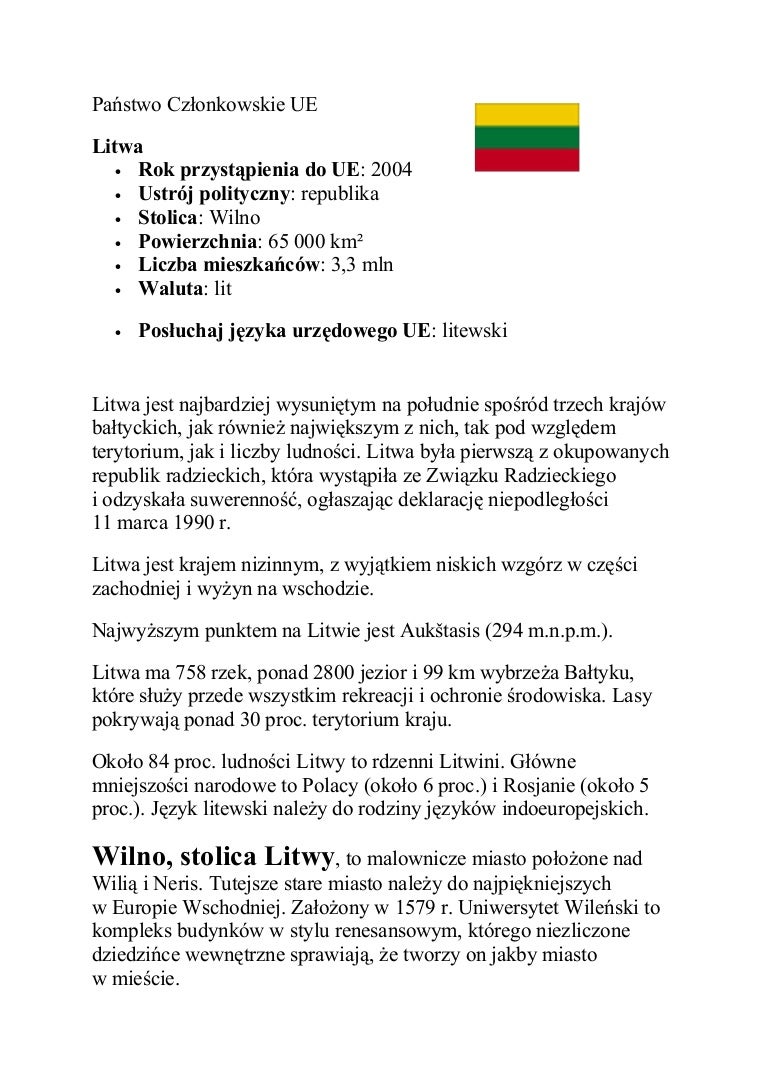01.i, wielką sobotę oraz 1 dzień wielkanocy. Alina grabovska, 17 sierpnia 2012, 11:17. Kraje europejskie powinno się znać wszystkie łącznie z położeniem i stolicami i językiem urzędowym, w końcu są to nasi. Stolica kraju, której powierzchnia wcale bardzo nie odbiega od wielkości warszawy, zamieszkiwana jest oficjalnie przez nieco ponad pół miliona mieszkańców. Miejsce obrad sejmów wielkiego księstwa litewskiego. Centrum gospodarcze, naukowe ikulturalne kraju. Wilno, stolica litwy, jest ekscytującym miejscem do zwiedzania. Oferujemy zwiedzanie wilna z przewodnikiem grup oraz osób indywidualnych. W przedwojennej polsce wilno przez długi czas pozostawało stolicą województwa wileńskiego, jednak nie było stolicą żadnego kraju. Wilno po unii lubelskiej nie utrzymało formalnych funkcji stolicy rzeczypospolitej obojga narodów. Wilno, stolica litwy, na pojezierzu wileńskim, nad wilią, u ujścia wilenki; Ze wszystkich legend o stolicy litwy, wilnie, ludzie, którzy tu mieszkają, uwielbiają tę, która mówi nam o marzeniu wielkiego księcia giedymina o wilku wycie setkami głosów. Niezwykłym urokiem i ogromem zabytkowych obiektów.